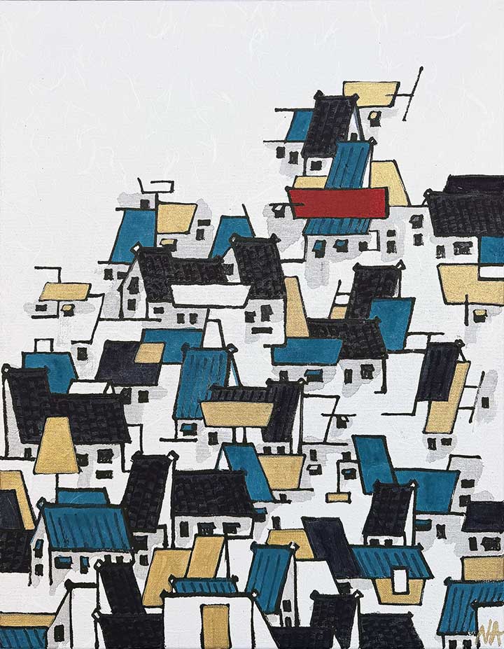I use contemporary Chinese brushstrokes and empty space to create a sophisticated balance in my work. With a background in architecture and a passion for lines and the graphical nature of it I continue to develop arrangements that allude to strong imagery. The materials consist of handmade paper, ink made of pine soot & watercolors. The paper has silk, cotton, wood chips & mulberry pressed into the pulp. The result is a velvety, tactile surface. The ancient process of preparing the artwork is similar to that of mounting eastern scrolls. This method of preparing works on paper dates back two thousand years and can only be done by a handful of artisans in America.