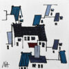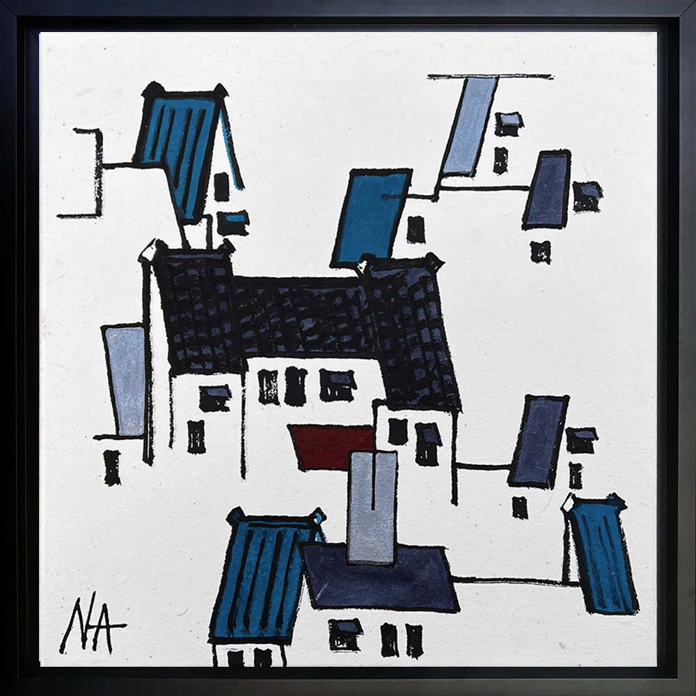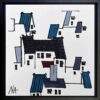 Ink and watercolor on handmade paper. Black floating frame included.