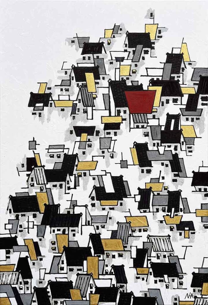 I use contemporary Chinese brushstrokes and empty space to create a sophisticated balance in my work. With a background in architecture and a passion for lines and the graphical nature of it I continue to develop arrangements that allude to strong imagery. The materials consist of handmade paper, ink made of pine soot & watercolors. The paper has silk, cotton, wood chips & mulberry pressed into the pulp. The result is a velvety, tactile surface. The ancient process of preparing the artwork is similar to that of mounting eastern scrolls. This method of preparing works on paper dates back two thousand years and can only be done by a handful of artisans in America.