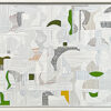 Acrylic on paper collage. Artwork is on a wood panel and comes with a white floating frame.