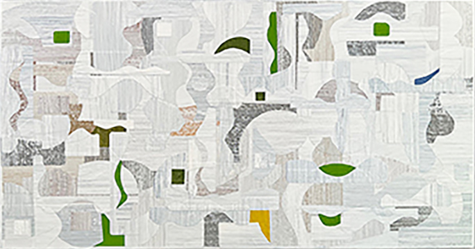 I first start by stretching handmade paper made of cotton, mulberry and straw, on large 4’x8′ boards. Medium body acrylics are then used to texture the surface, however sometimes the paper is left in its natural color to add an organic element to the artwork. Each shape is then cut freehand giving the piece’s crisp edges as well as organic character. Wheat paste that is shipped from Japan in a powder form, is boiled down with water and then pushed through a horse hair strainer to remove all fine lumps. The glue is then applied with a wide brush to the back of each piece and placed on the artwork making sure that all excess glue and bubbles are removed between each application. This technique is only known by a handful of artisans in the United States and traditionally used to restore antique shoji screens and scrolls.
